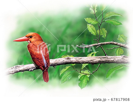 野鳥細密画イラスト アカショウビン