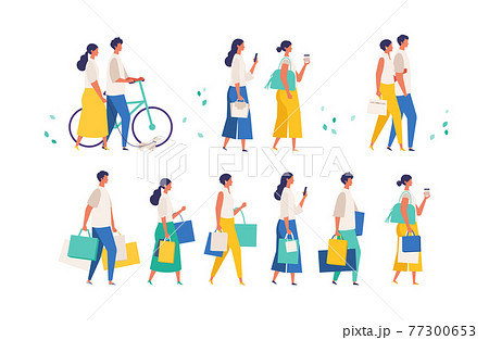 夏の買い物に行くの人々イラスト