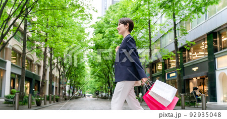 女性 買い物 ショッピング 新緑