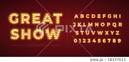 3d light bulb alphabet with gold frame isolated on dark red background.
