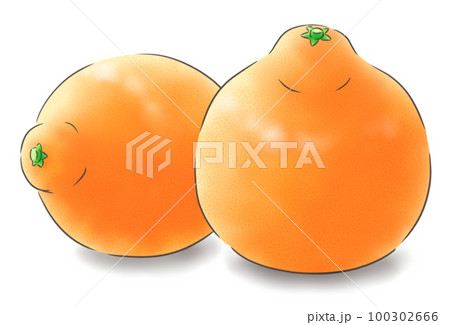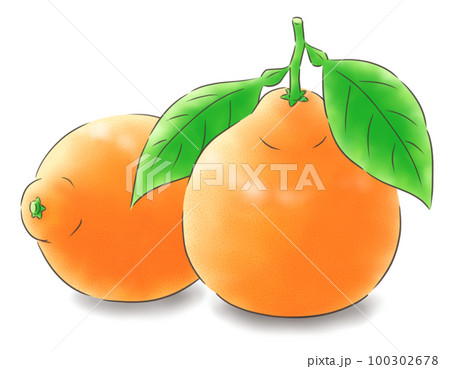 葉付き・横向き不知火と不知火のスマイルカット(影あり)・線1色