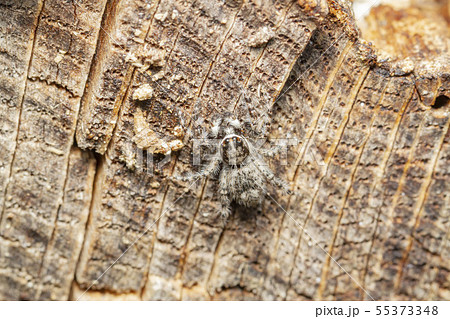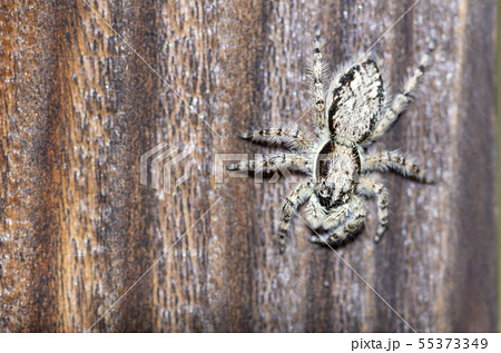 生き物 蜘蛛 シラヒゲハエトリ、人工物に多いと言われますが自然では大きな木の幹が住処かな?