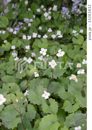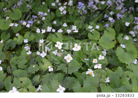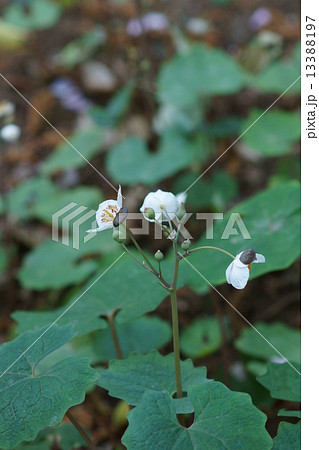自然 植物 シラユキゲシ、四月頃フキに似た葉の間に白いきれいな花が咲きます②
