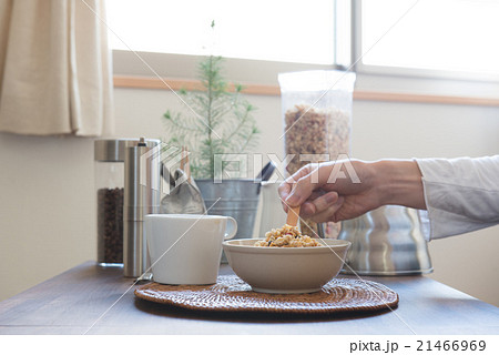 写真素材: 桃とバナナとナッツをトッピングしたオートミールボウル(朝ごはん)