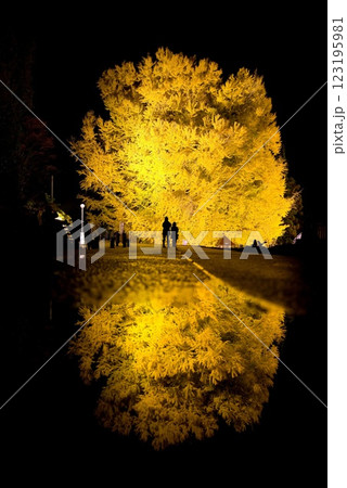 北金ヶ沢の大イチョウのライトアップとリフレクション