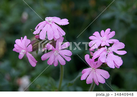 春の日本の公園に咲くピンク色のフクロナデシコ(サクラマンテマ)の花
