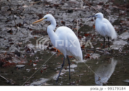 白鷺とアオサギ 自然と野鳥 イメージ素材
