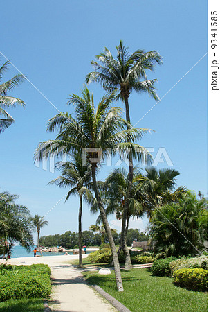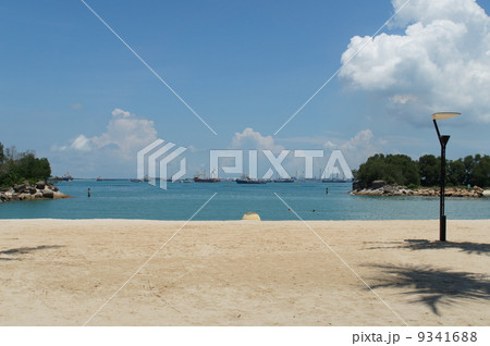 ケーブルカーのポイント越しに シンガポール、リゾート地・セントーサ島、シロソビーチを望む