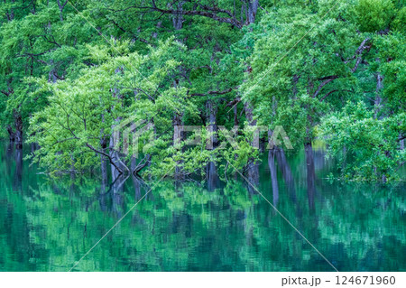 白川湖の水没林(山形県・飯豊町)
