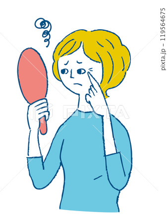 鏡を見て肌悩みに向き合う女性 ネガティブな感情のイラスト