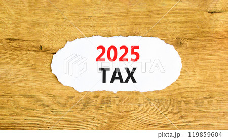 Planning 2025 tax new year symbol. Concept words 2025 Tax on beautiful white paper. Beautiful wooden background. Business 2025 tax new year concept. Copy space.