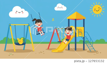 公園の遊具で仲良く遊ぶ笑顔の可愛い子供たち