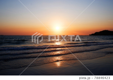 シーチャン島から見たシーラチャー湾に昇る朝日 タイ王国チョンブリー県