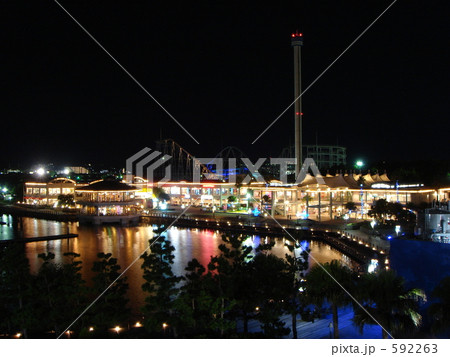 [神奈川・横浜] 八景島シーパラダイスのシーパラダイスタワーとサーフコースター リヴァイアサンの夜景