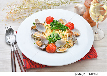 イタリアンパスタ、ボンゴレビアンコ(浅蜊、あさりとニンニクのオリーブオイル)。