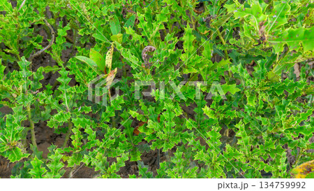 Top View of Green Sea Holly Leaves in Mangrove Swamp