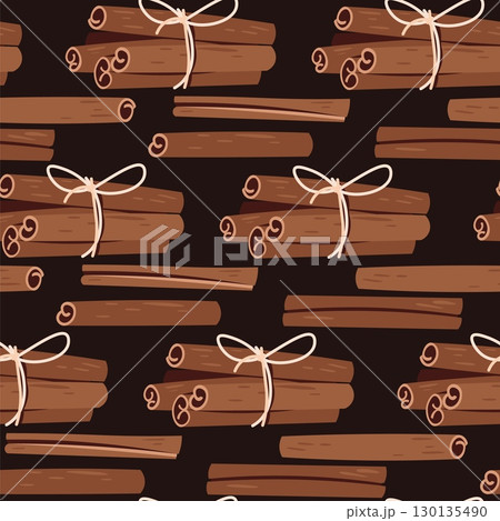 Cinnamon Sticks Seamless Pattern Flat Vector. Spice Texture for Cafe Branding, Food Packaging, Seasonal Design. Repeat Background for Wallpaper, Textile, Wrapping Paper, Autumn Theme. Cozy Print