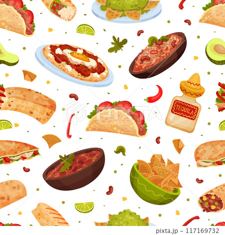 Traditional Mexican Dish Seamless Pattern Design with Food Vector Template
