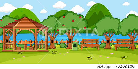 Outdoor scene with pavilion in the park