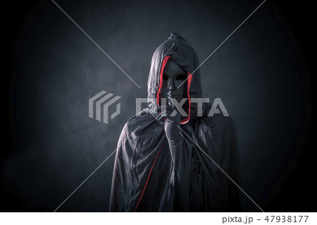 Scary figure in hooded cloak