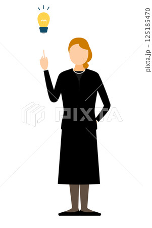 喪服を着た女性がアイデアをひらめくシンプルなイラスト