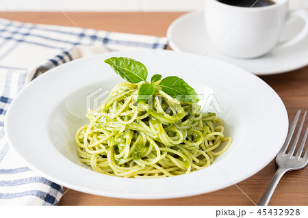 イタリアンパスタのジェノベーゼ、ジェノバソース、バジルソース、バジルと松の実とチーズのスパゲッティ。