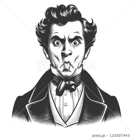 Classic gentleman bust avatar in engraving style. Black and white man drawing, in vintage style