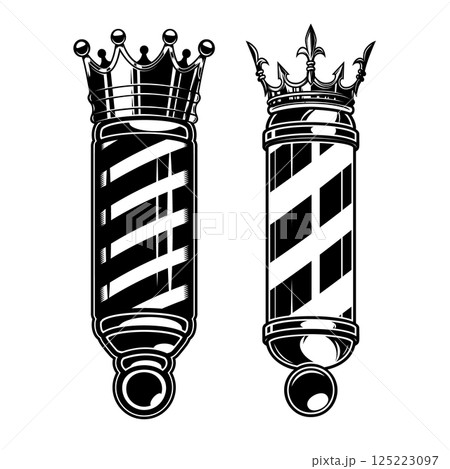 Barber pole with king crown. Design element for logo, label, sign, emblem. Vector illustration
