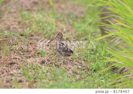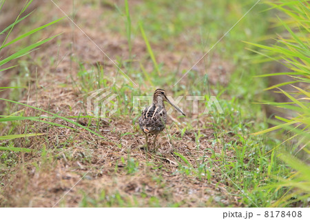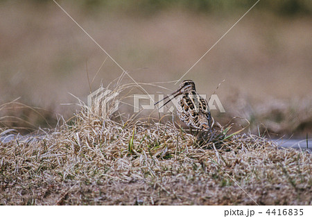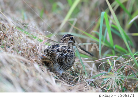 生き物 野鳥 タシギ、チドリ目シギ科の野鳥。体色は保護色、枯草の中では全く存在に気がつきません