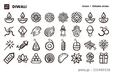 ディワリアイコンイラストセット EPS版は線の太さ等編集可能