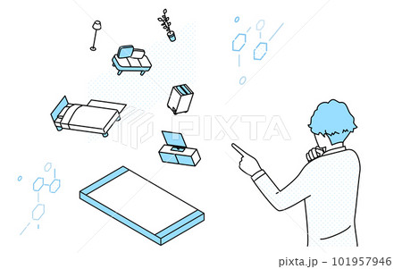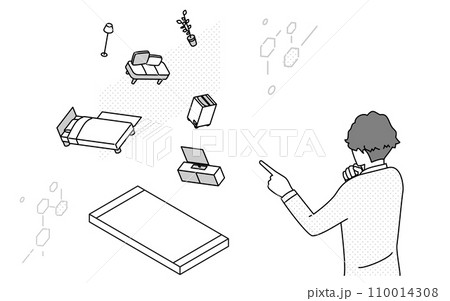 DXのイメージ、引越しの検討で家具を配置するARアプリを使う男性