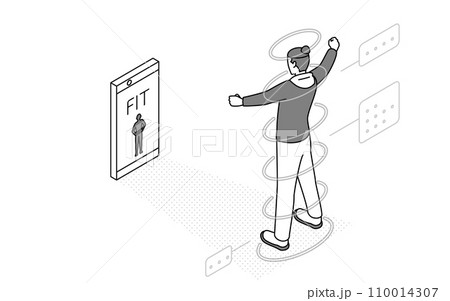DXのイメージ、体のサイズをスマホのカメラ機能で測るアプリを使う男性