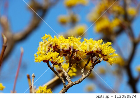 f春の訪れを知らせてくれる花、サンシュユの花。