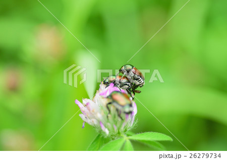 マメコガネとムラサキツメクサ(アカツメクサ)