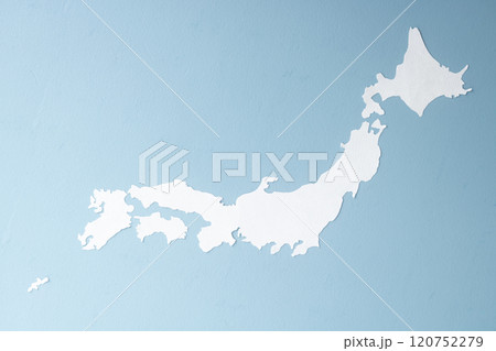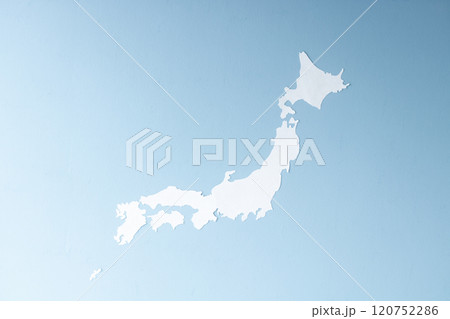立体的な日本地図、青色背景の陰影付き3D日本列島、ベクターイラスト素材