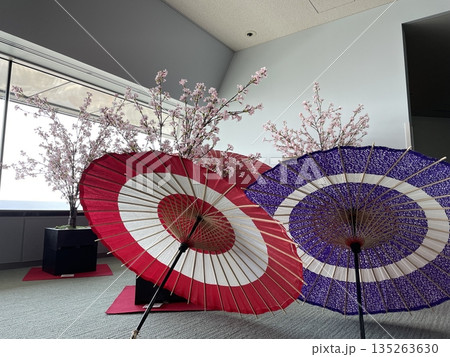 和傘と桜