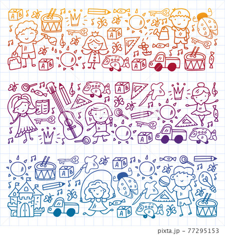 Vector pattern with little children. Kindergarten. Imagination. Creativity. Play.