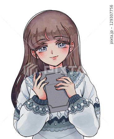 70sレトロ少女漫画風イラスト・ノートを持つ女の子