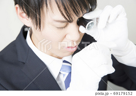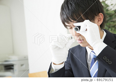 ルーペで指輪を見るミドルの男性 宝石鑑定士 イメージ