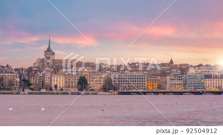 City skyline of Geneva with Lake Geneva, cityscape of Switzerland