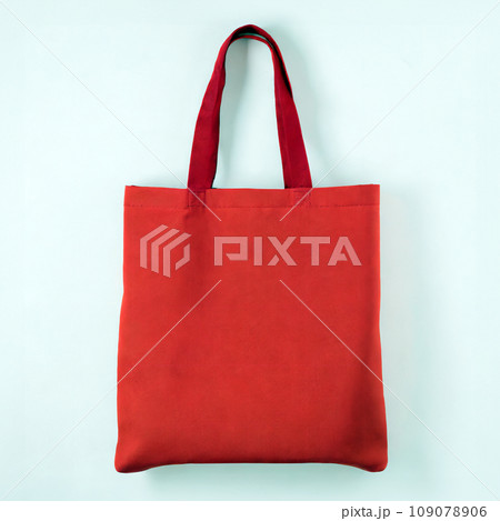 赤色|帆布のトートバック|無地で柄の無いトートバッグ|モックアップ|AI生成画像