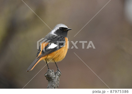 注意)100%正しい確証はありません。野鳥のジョウビタキ(尉鶲)のオス。野鳥のイメージ。