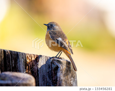 切り株にとまるジョウビタキのメス