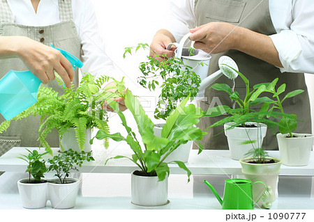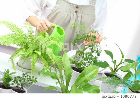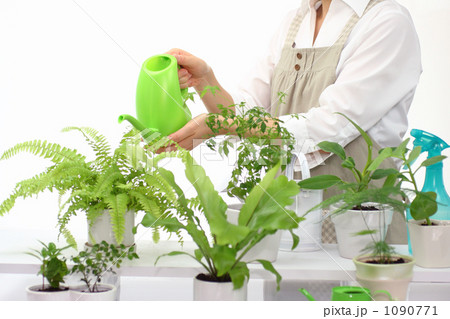 植物に水をやる女性