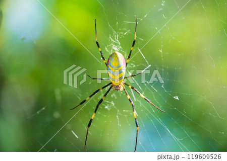 円網を張るジョロウグモ科ジョロウグモ♀
