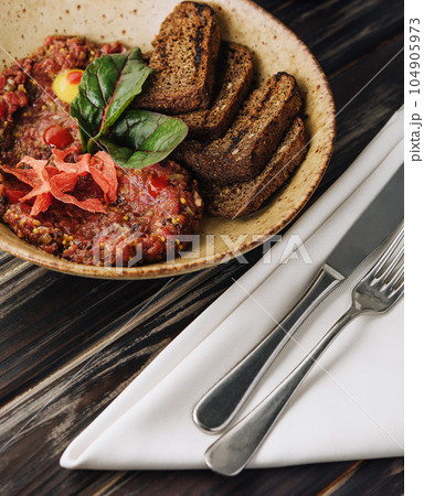 Snack salad of roasted eggplant with garlic and tomato