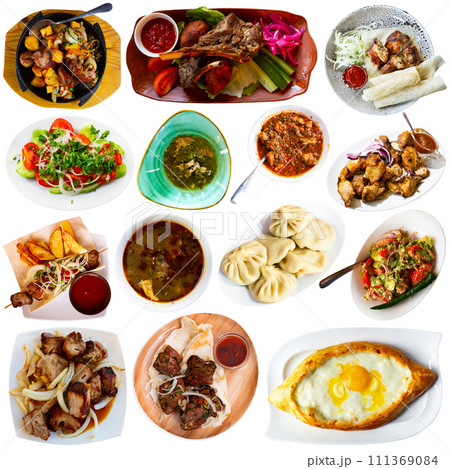 Set of Georgian dishes isolated on white