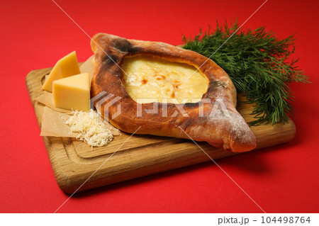 Kubdari Bread, Tasty Flat Bread Stuffed with Spiced meat. Wooden background. Top view