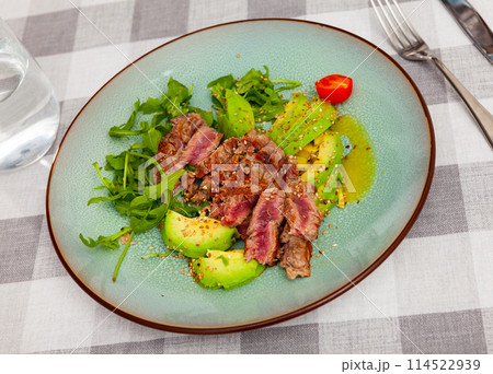 Just cooked portion of grilled lamb leg with potatoes and pepper