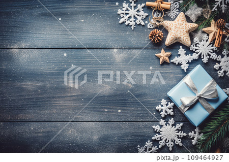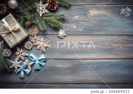 A christmas xmas background photo of some gifts, upper view, top view, postcard or invitation graphics